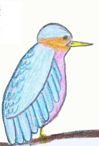 dorso azzurro e verde smeraldo, petto rosso mattone. E' lungo circa 16