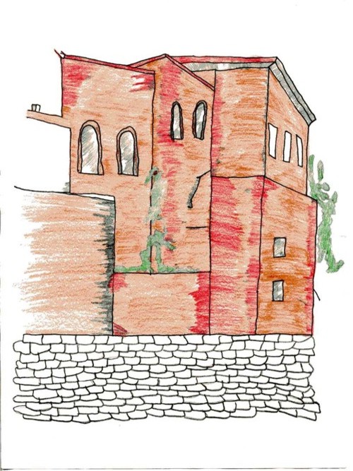 Nel disegno come dovevano apparire un tempo i resti delle mura del castello