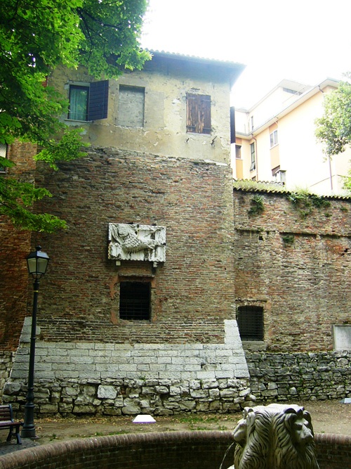 Nella prima foto si riconoscono i resti delle mura visibili dal ponte delle Erbe, nella seconda quelli vicino il teatro della Murata ed infine nella terza le mura in via Torre Belfredo.