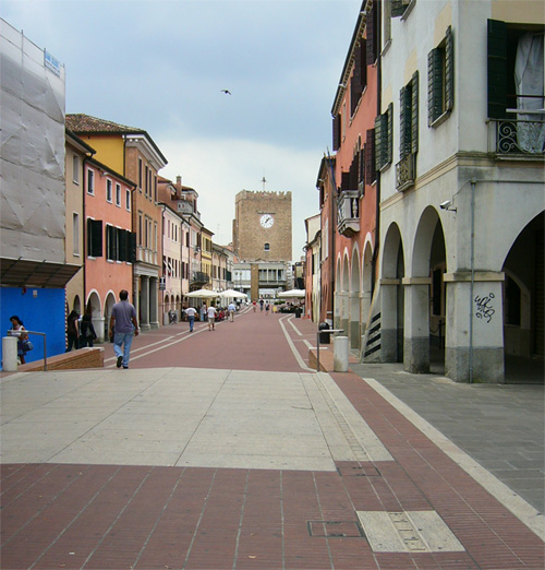 La via Palazzo era la via principale all'interno delle mura del Castelnuovo. Avevano sede il palazzo del Podestà e la Provvederia. Nella foto vediamo la via Palazzo oggi.